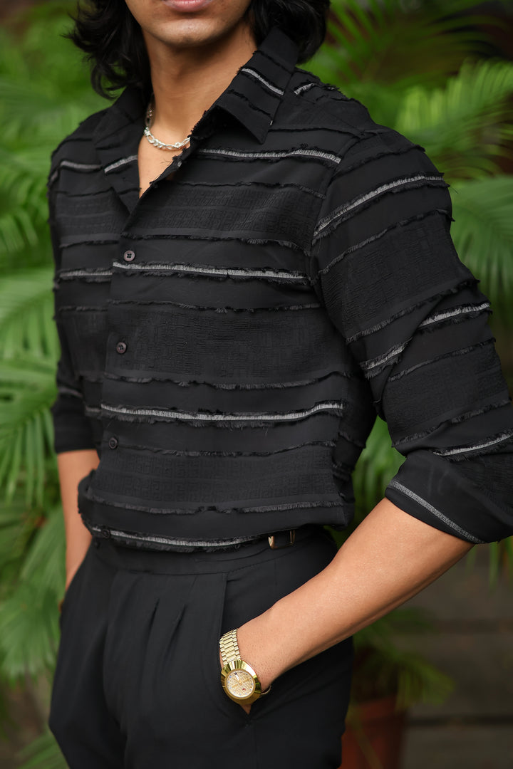 Elevate your style with our Shirt, ILYZLY Black Sandline Textura Shirt perfect for those smart-casual occasions. Crafted from premium, breathable linen fabric, it offers comfort and a polished look. The lightweight texture makes it ideal for all-day wear, while its semi-formal design seamlessly transitions from the office to after-hours events. A versatile wardrobe essential for the modern man. Comfort: Soft, breathable fabric for all-day wear.