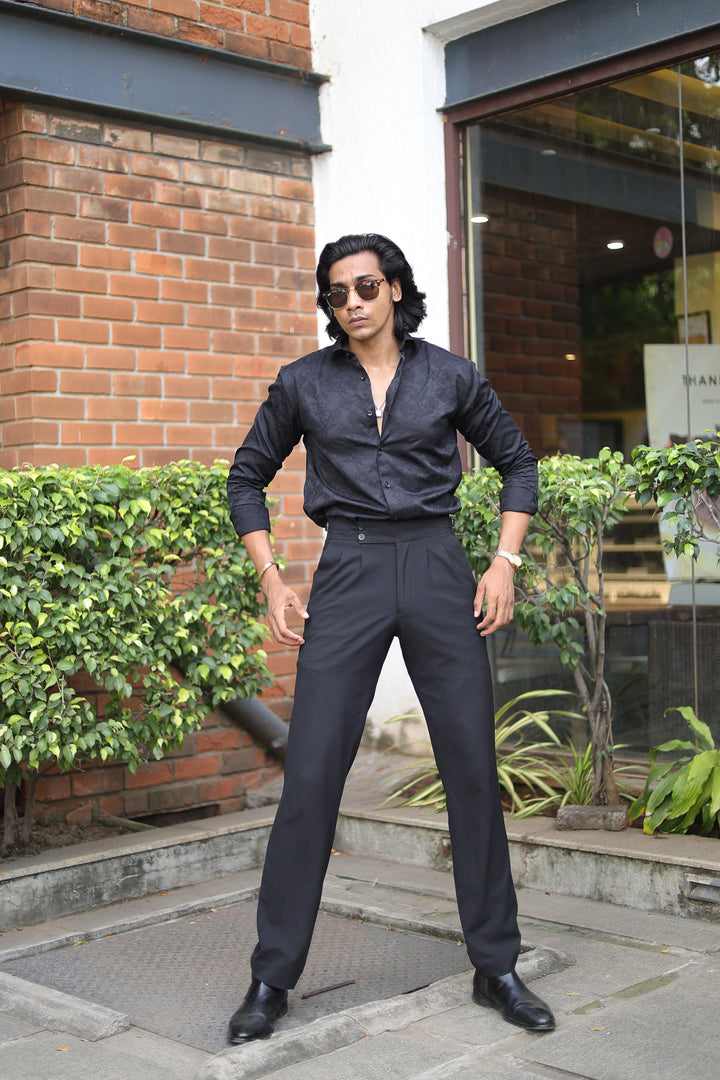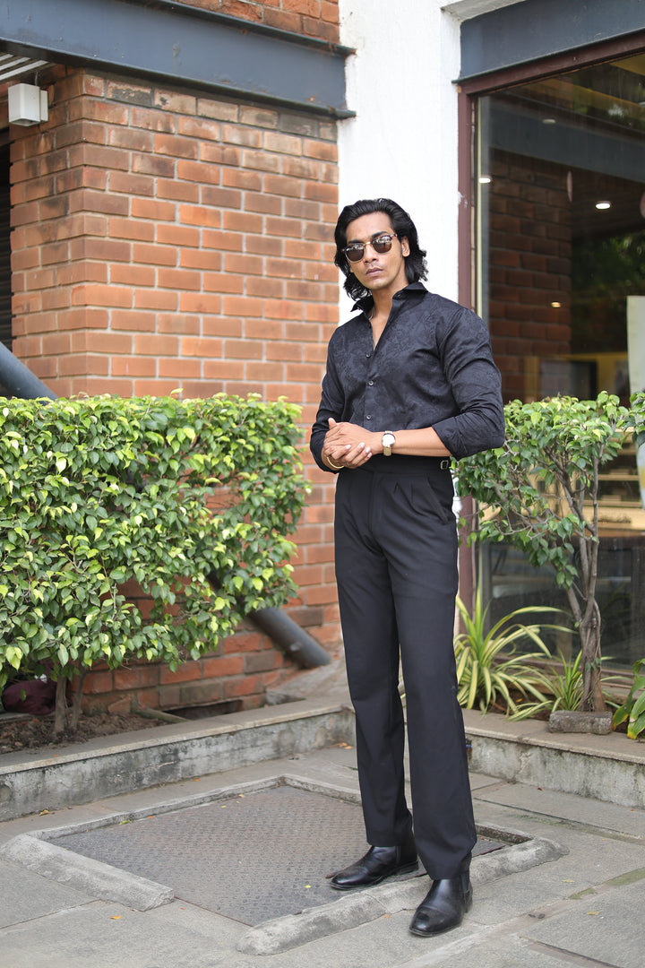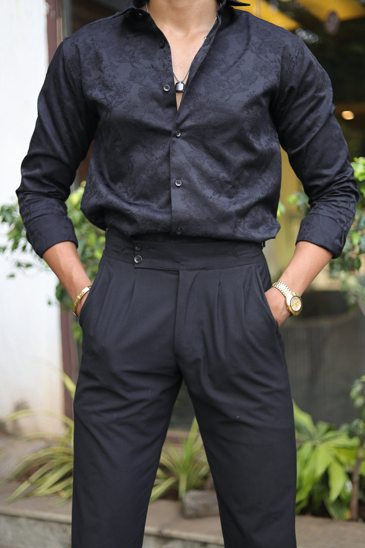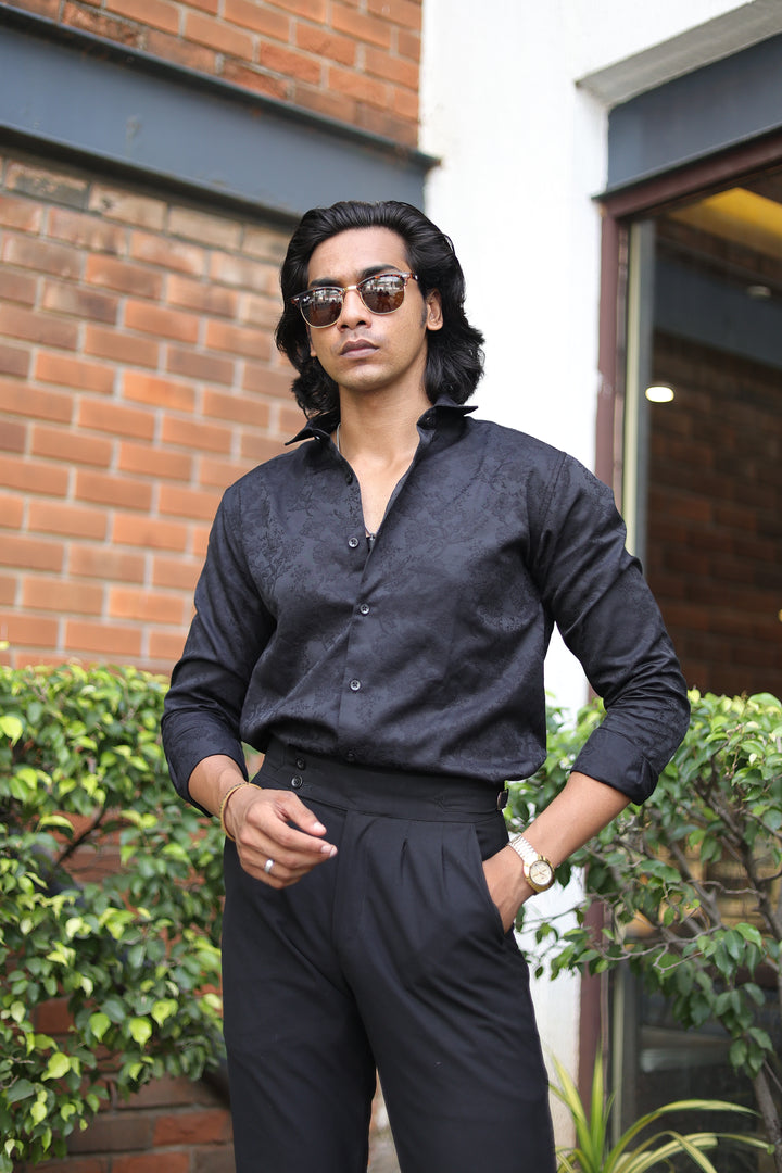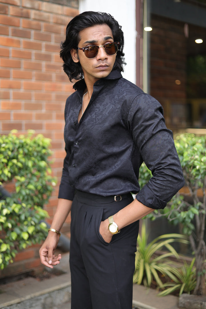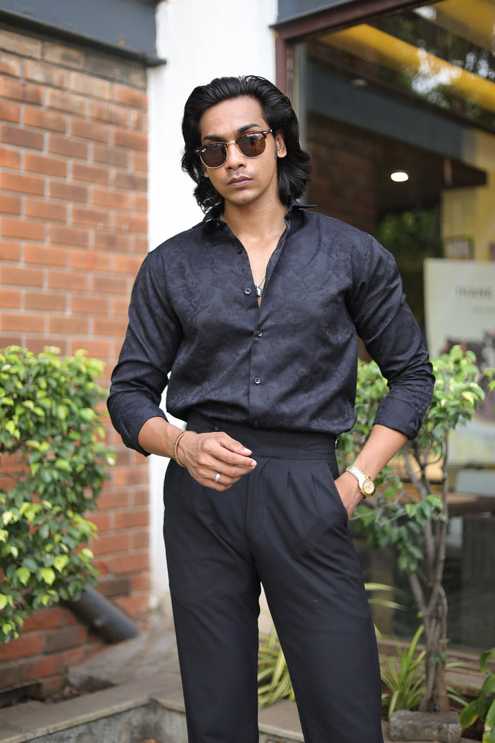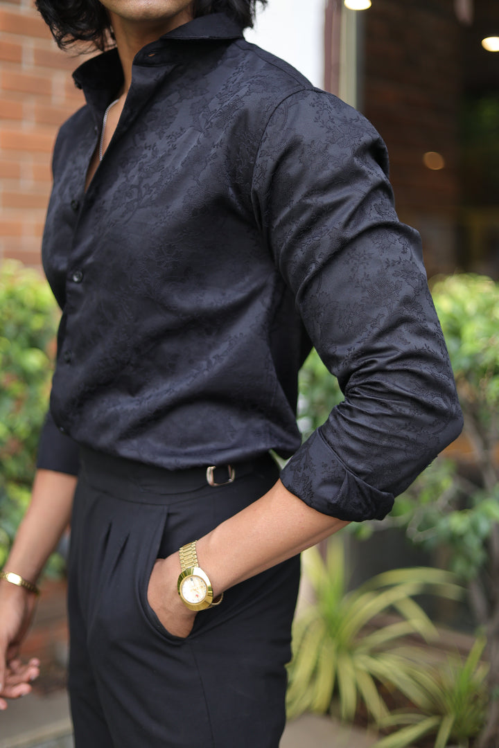 Black Jacquard Full Sleeve Shirt