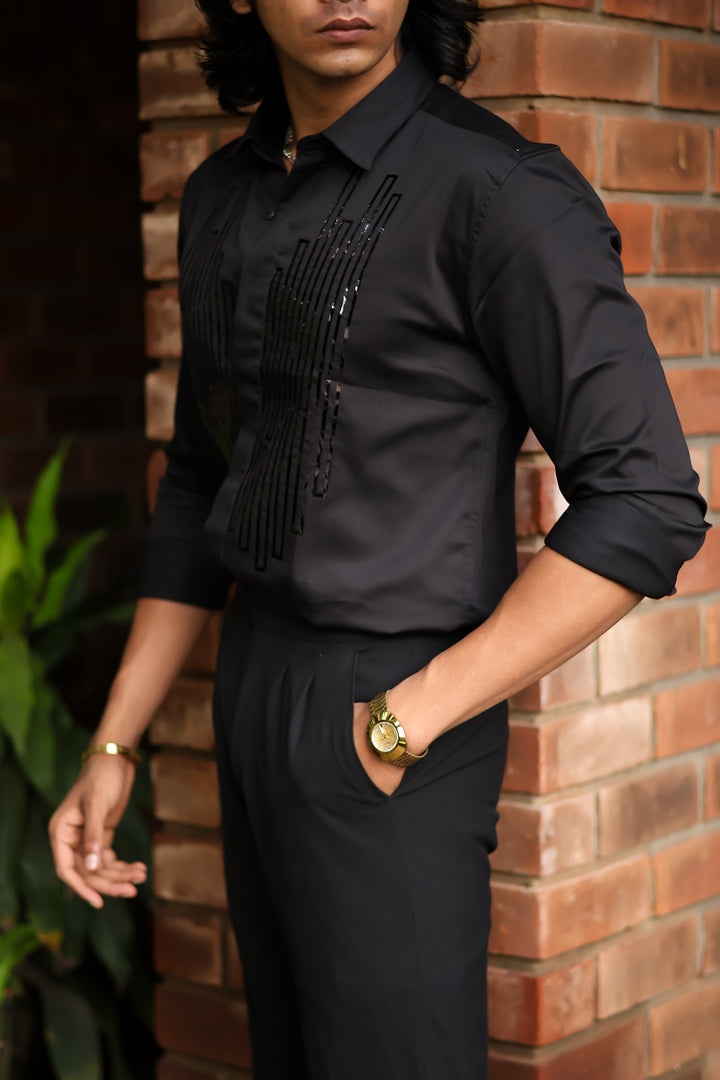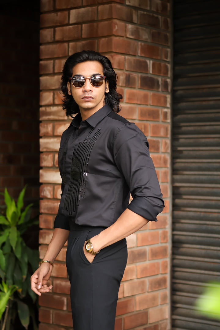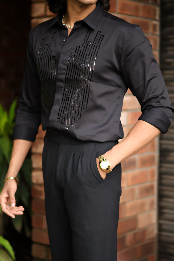 Elevate your style with our ILYZLY Black Element Designer Wear Shirt perfect for those smart-casual occasions. Crafted from premium, breathable linen fabric, it offers comfort and a polished look. The lightweight texture makes it ideal for all-day wear, while its semi-formal design seamlessly transitions from the office to after-hours events. A versatile wardrobe essential for the modern man. Comfort: Soft, breathable fabric for all-day wear