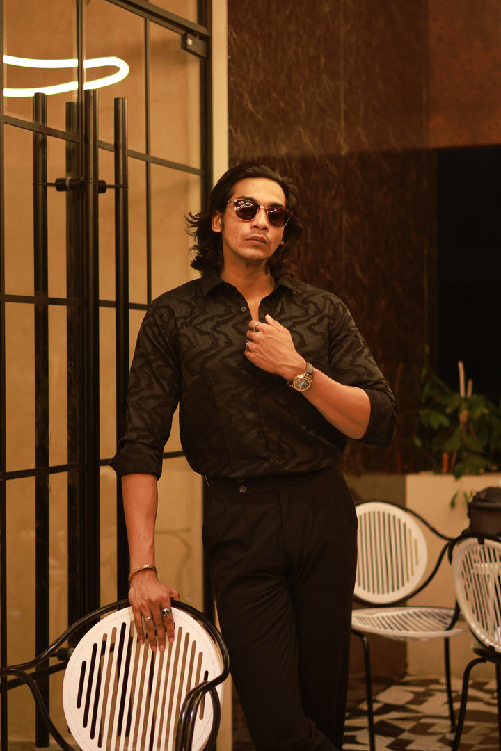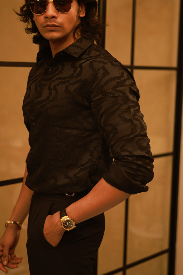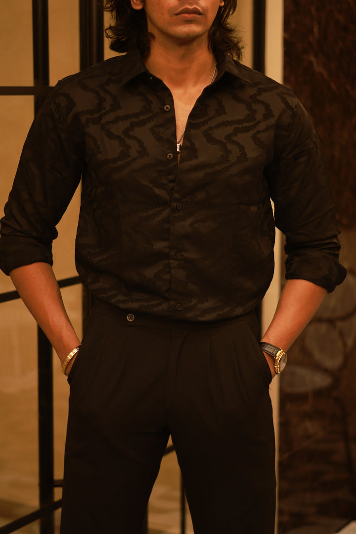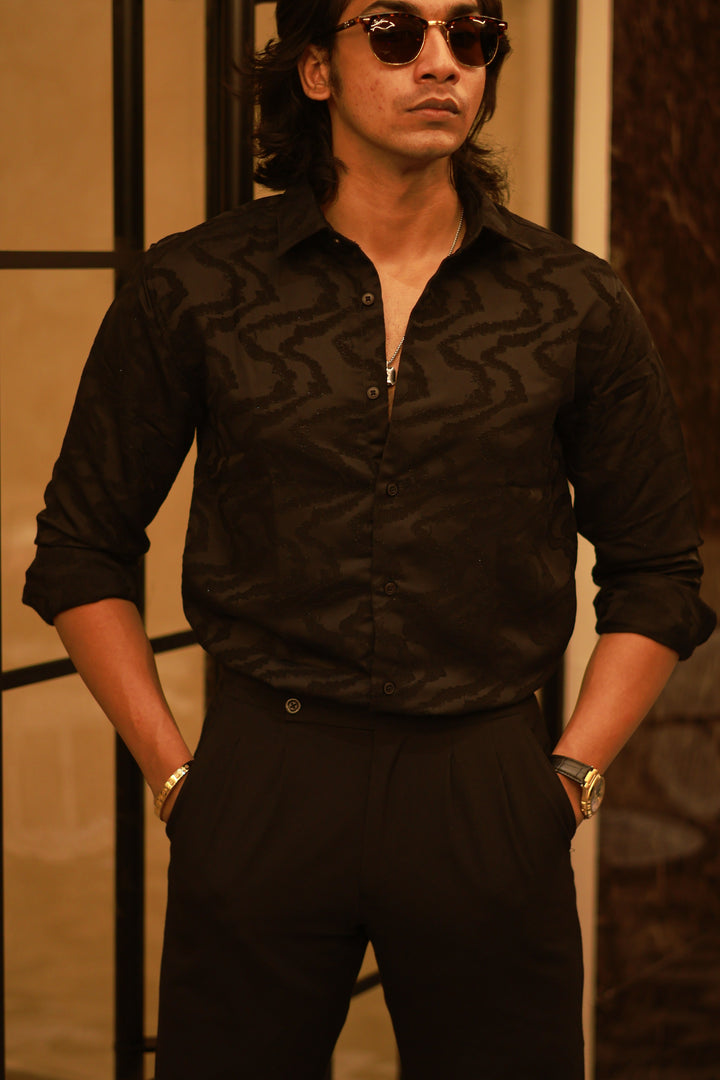Elevate your style with our Shirt ILYZLY Black Zig Zag Self Design Shirt perfect for those smart-casual occasions. Crafted from premium, breathable linen fabric, it offers comfort and a polished look. The lightweight texture makes it ideal for all-day wear, while its semi-formal design seamlessly transitions from the office to after-hours events. A versatile wardrobe essential for the modern man. Comfort: Soft, breathable fabric for all-day wear