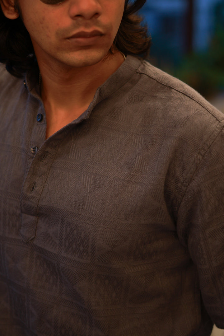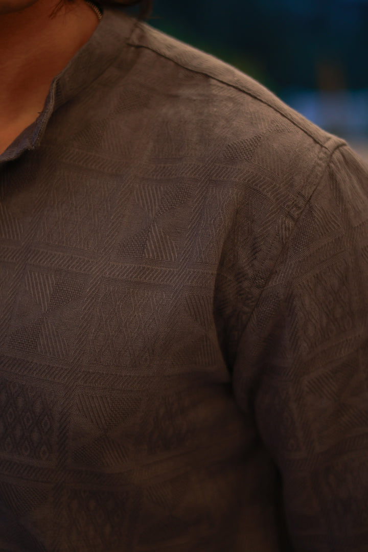 A perfect blend of texture and style, this Mandarin collar shirt features a refined horizontal weave pattern. Crafted from a lightweight cotton blend, it’s designed for both comfort and a contemporary look that’s effortlessly versatile.