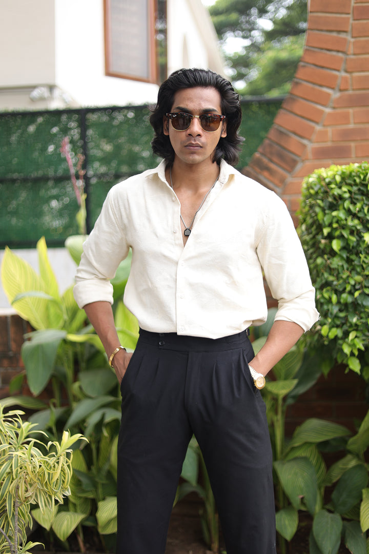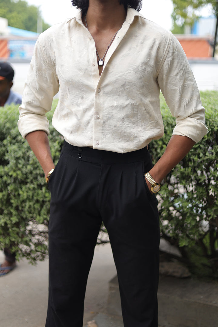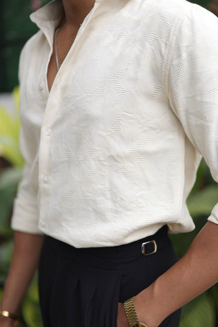 Elevate your style with our ILYZLY Cream Dotted Full Sleeve Shirt perfect for those smart-casual occasions. Crafted from premium, breathable linen fabric, it offers comfort and a polished look. The lightweight texture makes it ideal for all-day wear, while its semi-formal design seamlessly transitions from the office to after-hours events. A versatile wardrobe essential for the modern man. Comfort: Soft, breathable fabric for all-day wear