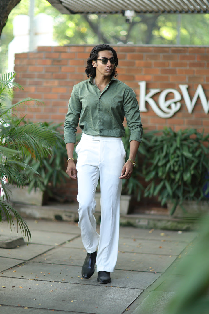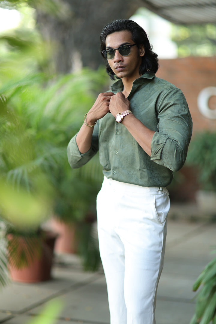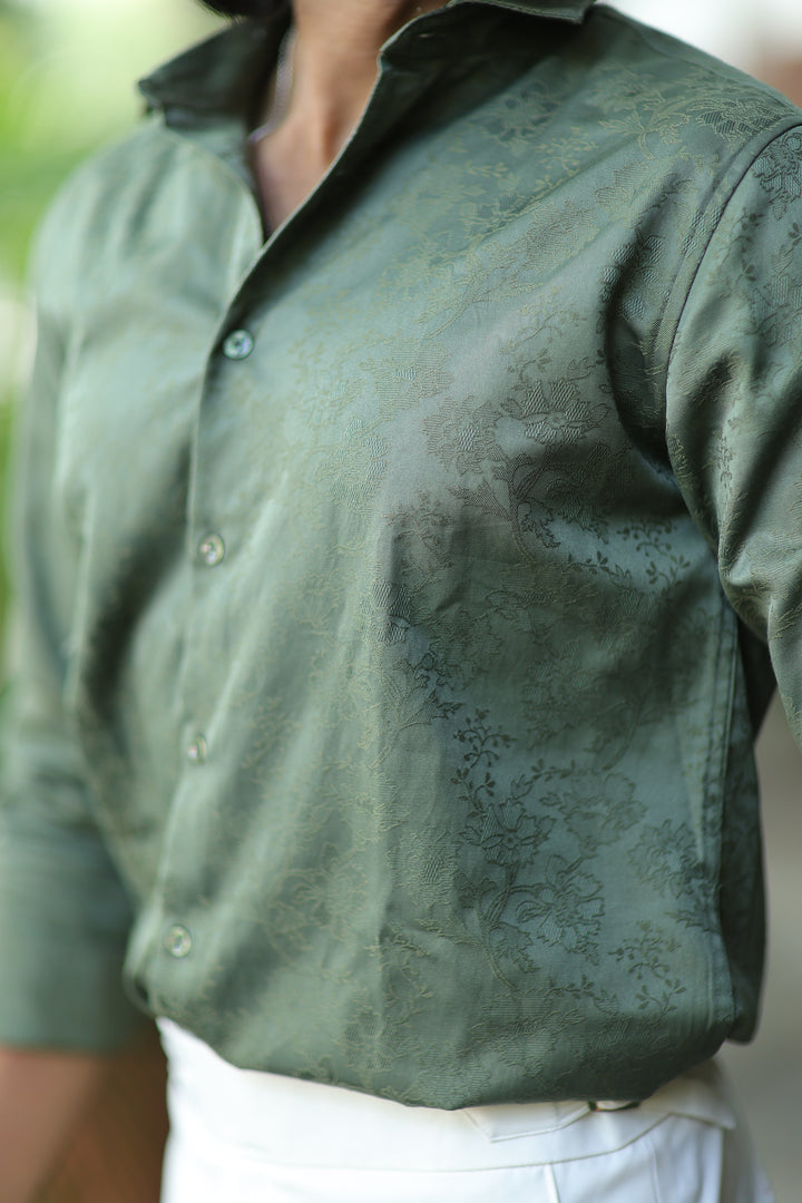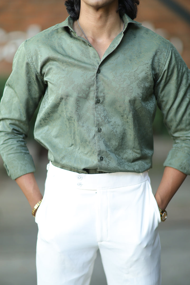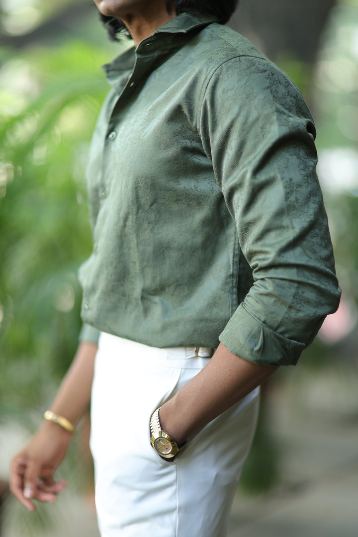 Elevate your style with our ILYZLY Green Jacquard Full Sleeve Shirt perfect for those smart-casual occasions. Crafted from premium, breathable linen fabric, it offers comfort and a polished look. The lightweight texture makes it ideal for all-day wear, while its semi-formal design seamlessly transitions from the office to after-hours events. A versatile wardrobe essential for the modern man. Comfort: Soft, breathable fabric for all-day wear