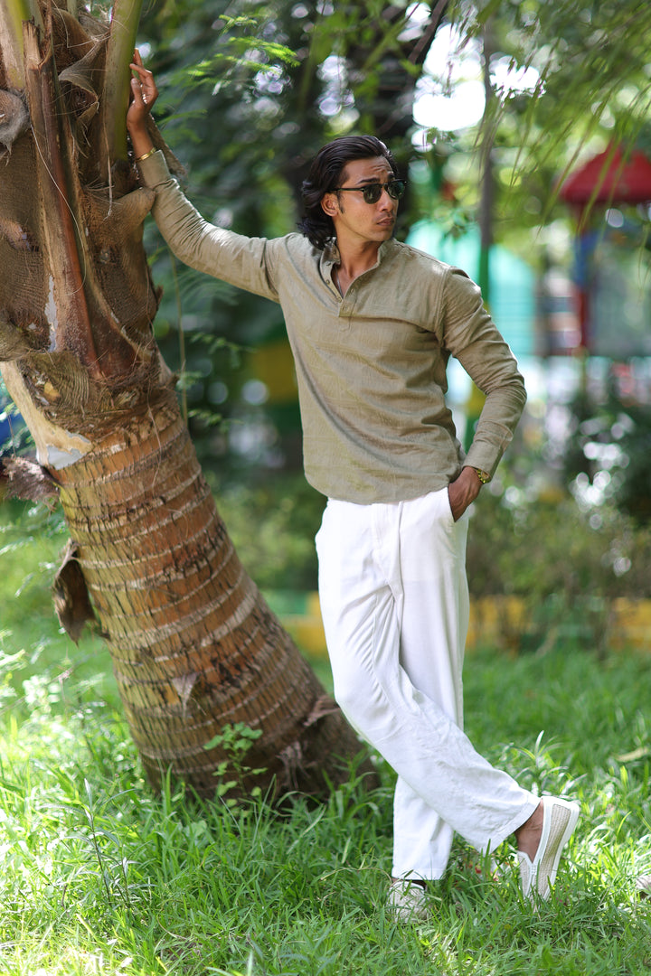 A perfect blend of texture and style, this Mandarin collar shirt features a refined horizontal weave pattern. Crafted from a lightweight cotton blend, it’s designed for both comfort and a contemporary look that’s effortlessly versatile.