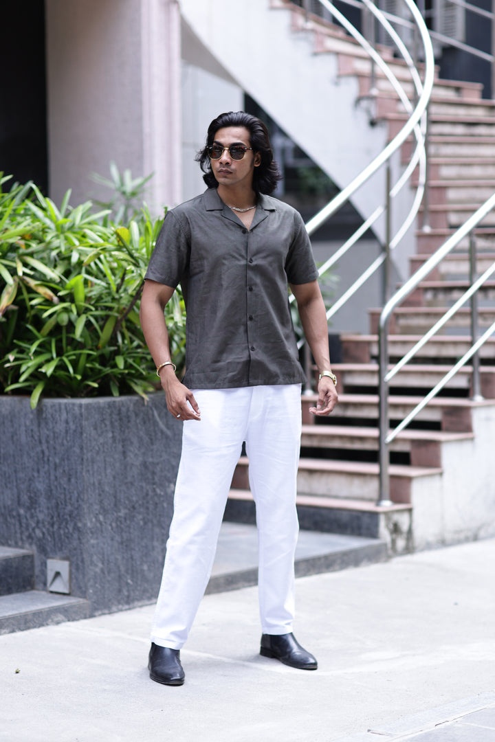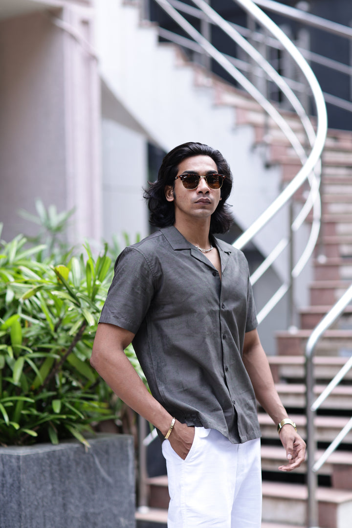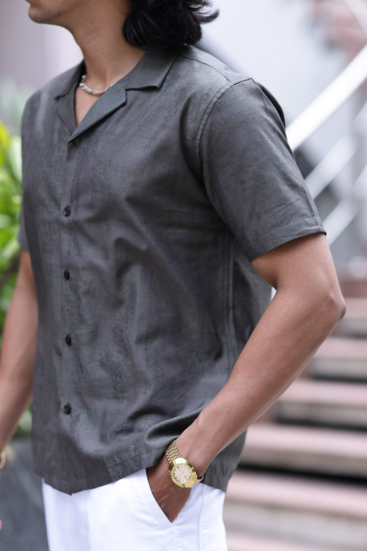 Add a touch of laid-back sophistication to your wardrobe with our, ILYZLY Grey Jacquard Cuban Collar Shirt . Crafted for comfort and style, this shirt features a relaxed fit and perfect for any casual outing or beach getaway. Made with lightweight, breathable fabric, this shirt ensures you stay cool and stylish, whether you're enjoying a sunny day or a casual evening out. Pair it with jeans, shorts, or chinos for an effortlessly chic look.