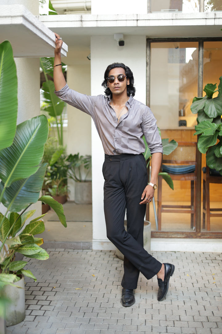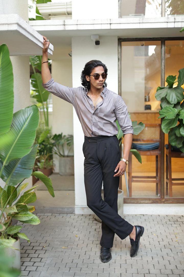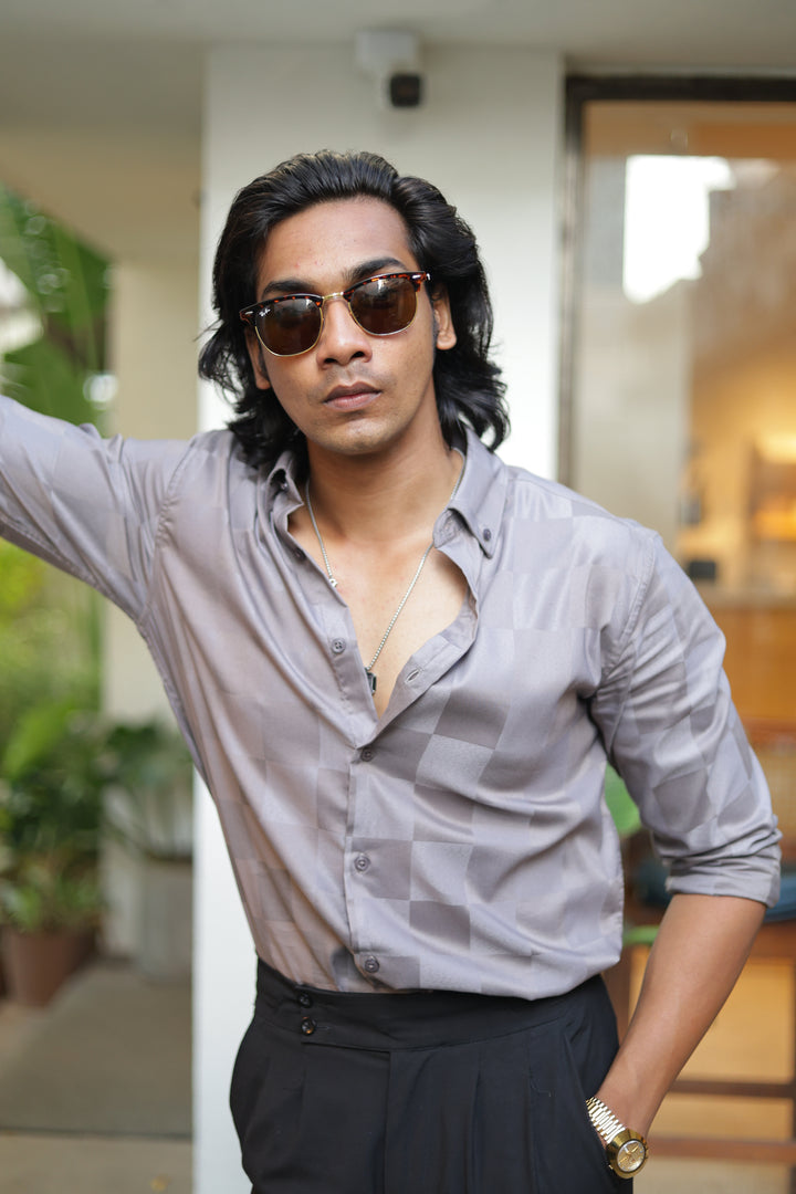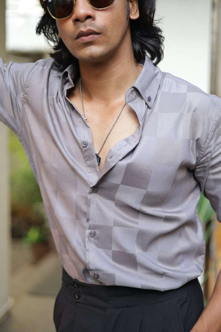 Elevate your style with our ILYZLY Grey Satin Check's Shirt perfect for those smart-casual occasions. Crafted from premium, breathable linen fabric, it offers comfort and a polished look. The lightweight texture makes it ideal for all-day wear, while its semi-formal design seamlessly transitions from the office to after-hours events. A versatile wardrobe essential for the modern man. Comfort: Soft, breathable fabric for all-day wear