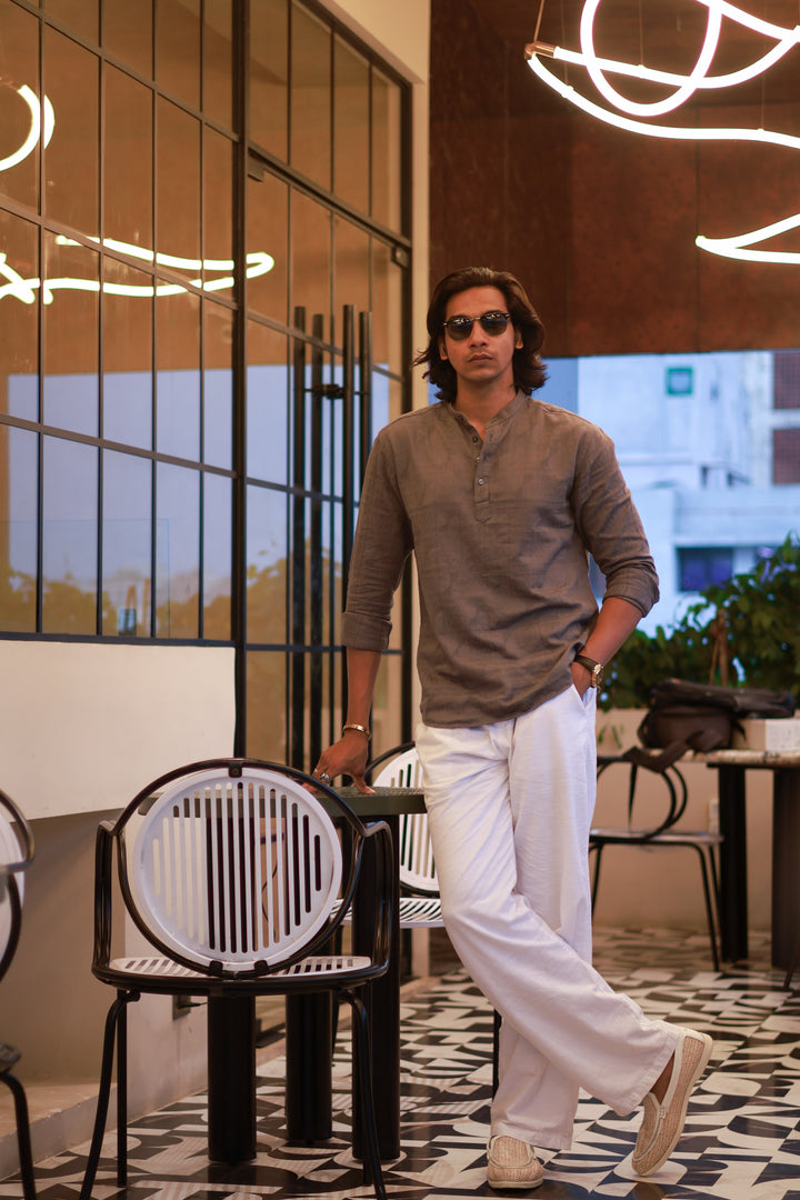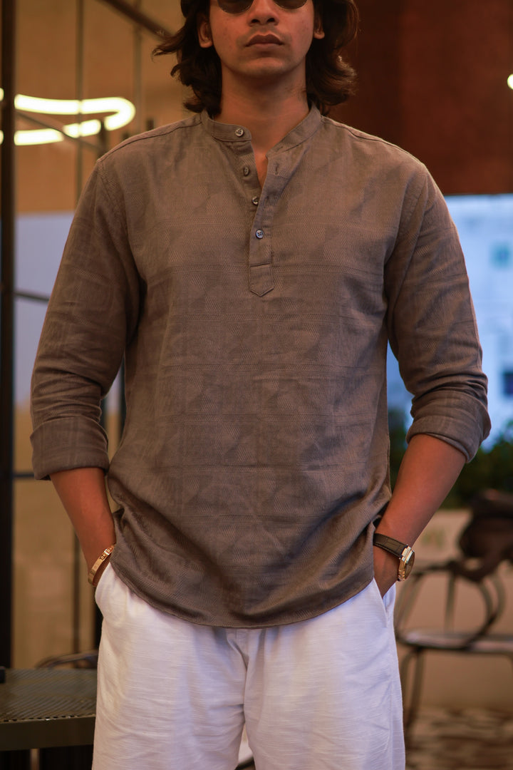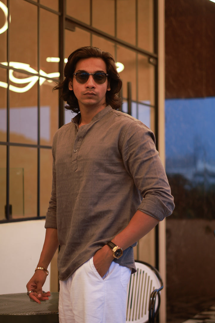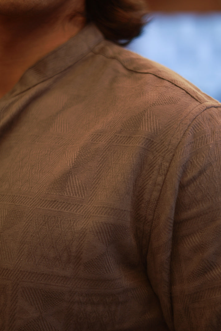A perfect blend of texture and style, this Mandarin collar shirt features a refined horizontal weave pattern. Crafted from a lightweight cotton blend, it’s designed for both comfort and a contemporary look that’s effortlessly versatile.