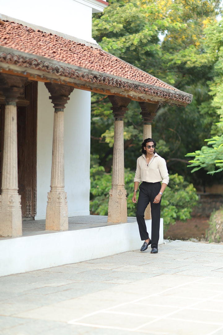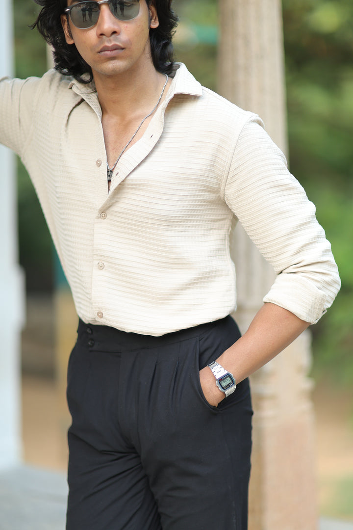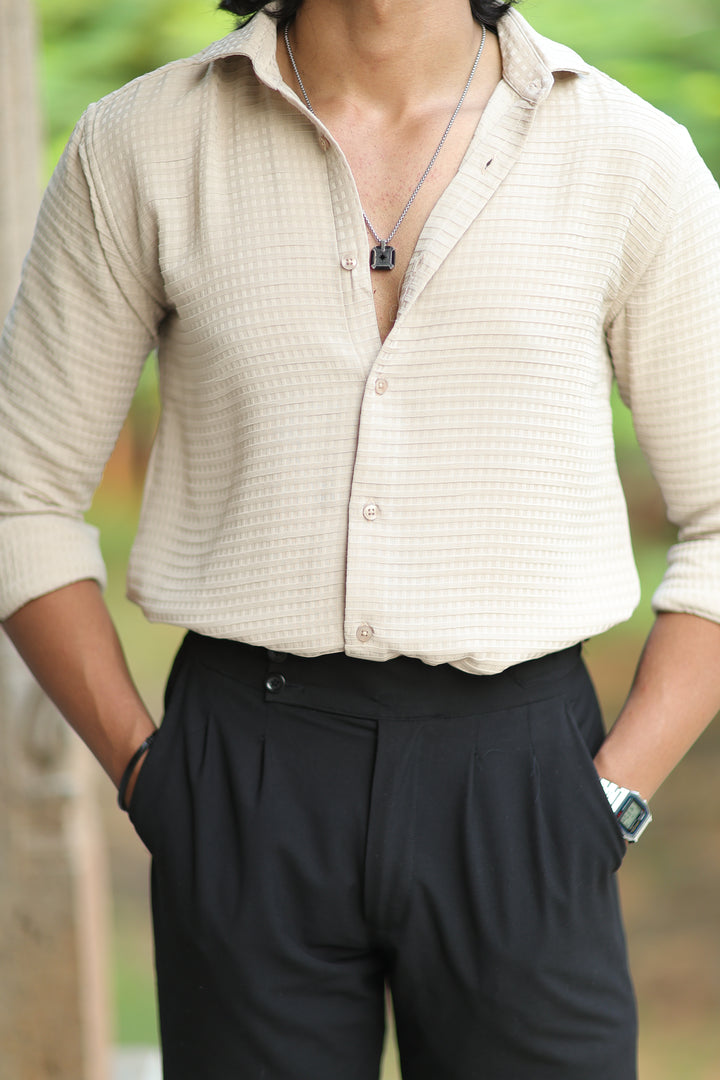 Elevate your style with our ILYZLY Cream Waffle Weave Office Wear Shirt perfect for those smart-casual occasions. Crafted from premium, breathable linen fabric, it offers comfort and a polished look. The lightweight texture makes it ideal for all-day wear, while its semi-formal design seamlessly transitions from the office to after-hours events. A versatile wardrobe essential for the modern man. Comfort: Soft, breathable fabric for all-day wear