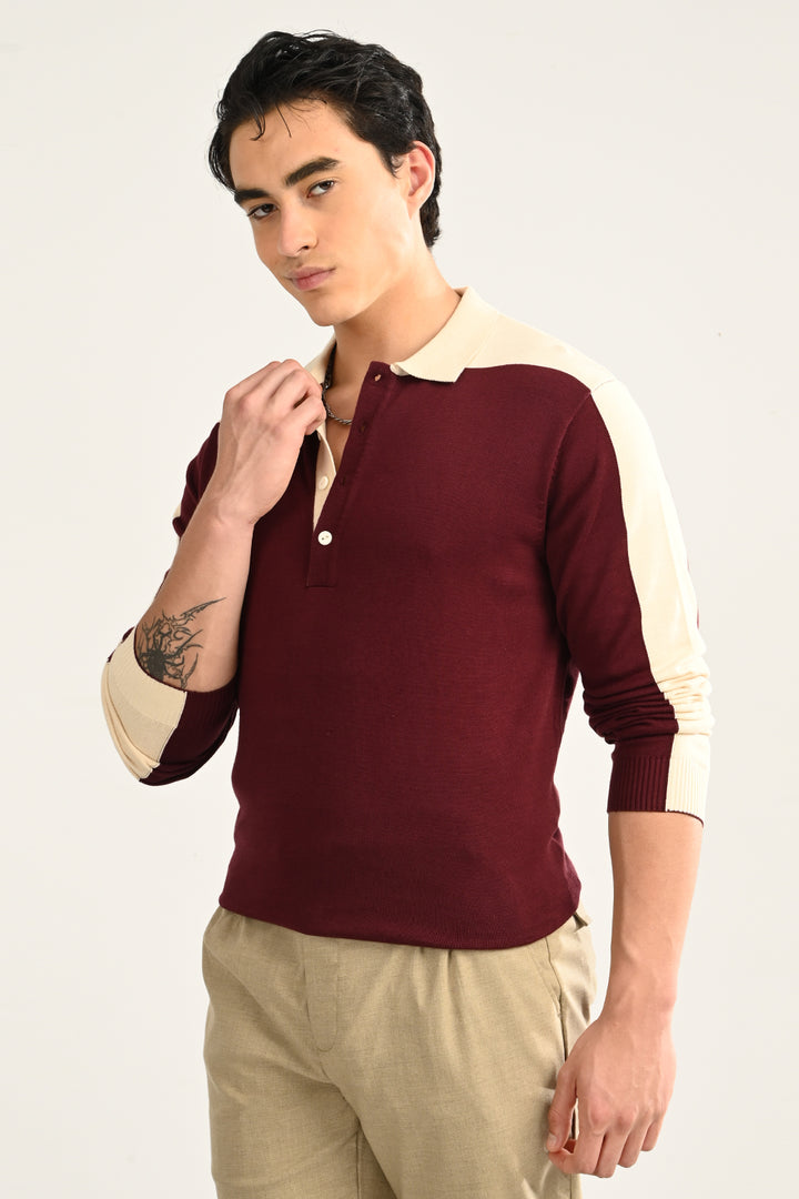 Upgrade your casual wardrobe with ILYZLY Deep Maroon Polo T-shirt Full Sleeve , where comfort meets timeless style. Made with soft knit fabric, this versatile piece is perfect for warmer days while maintaining a polished look. Whether it's a casual outing or a relaxed day at work, this polo has got you covered.