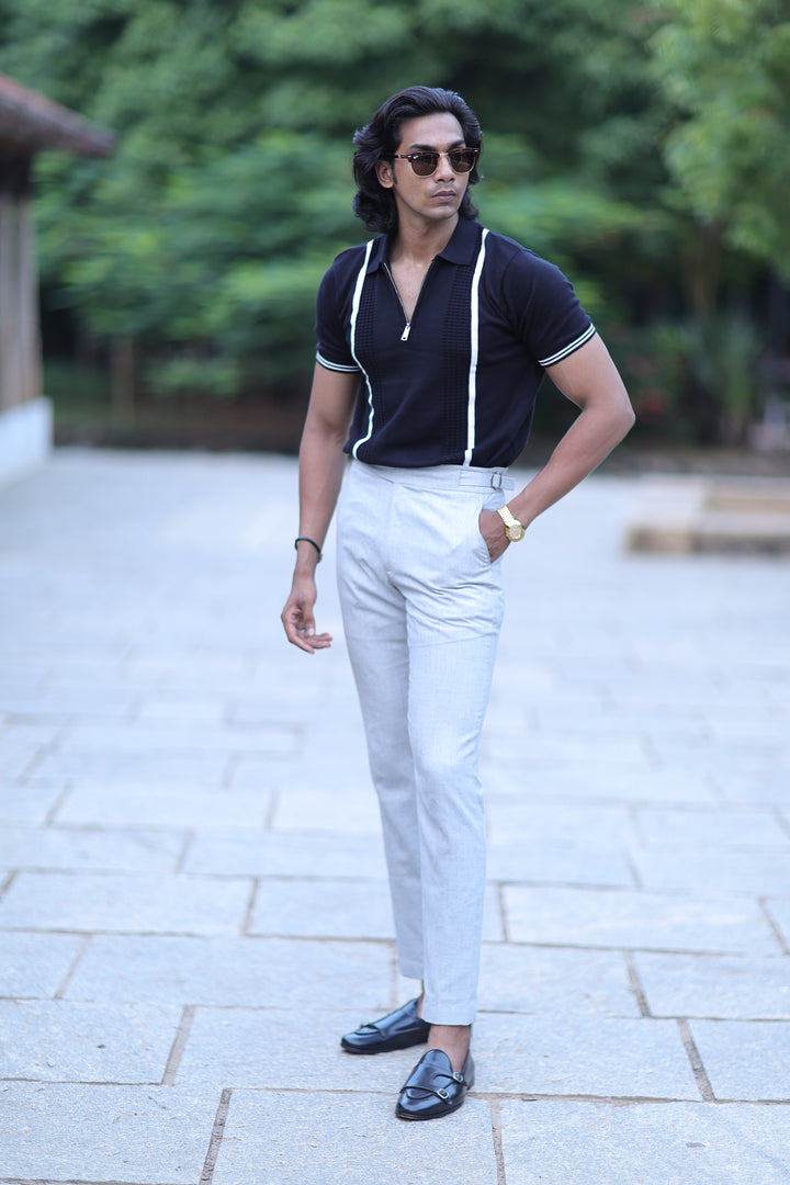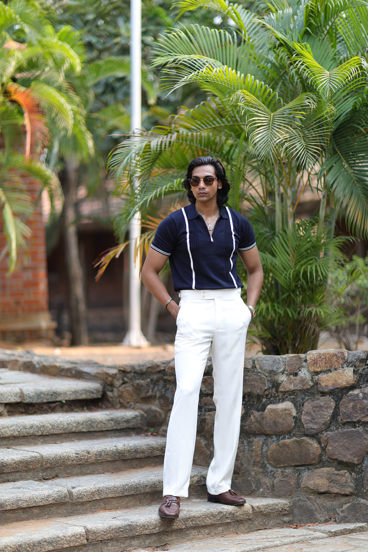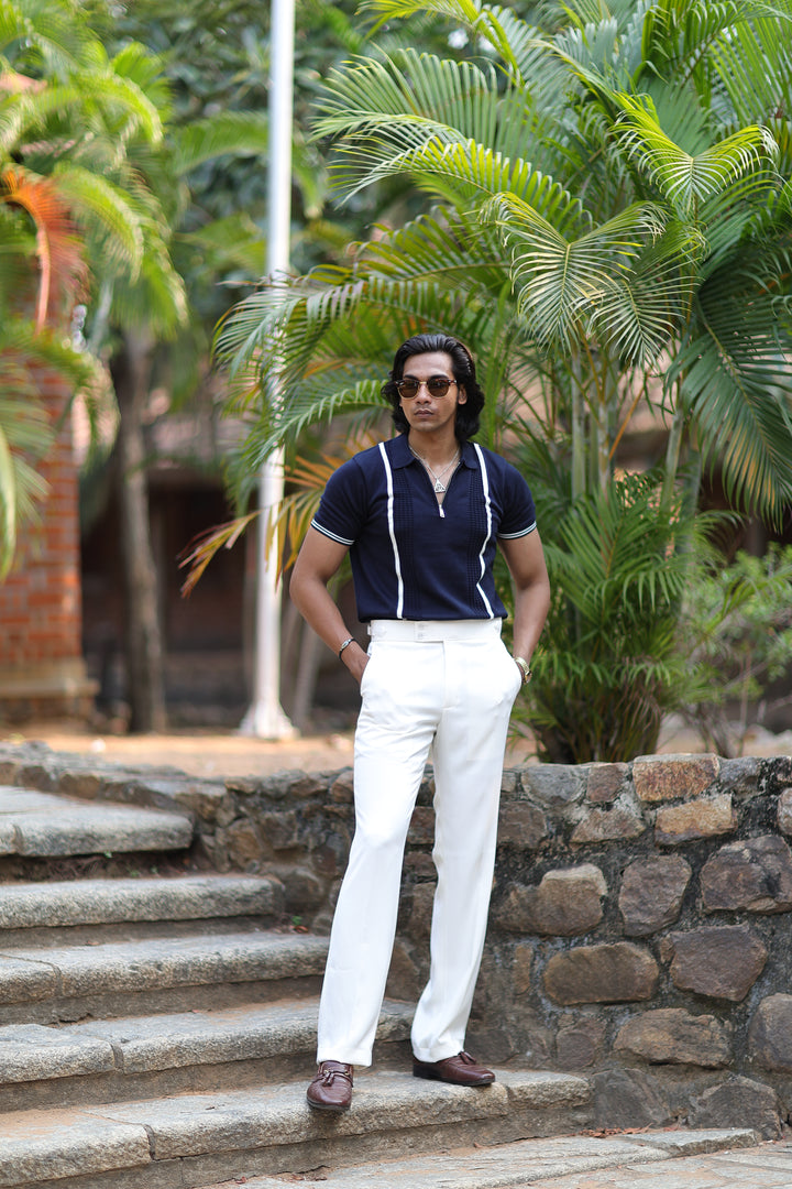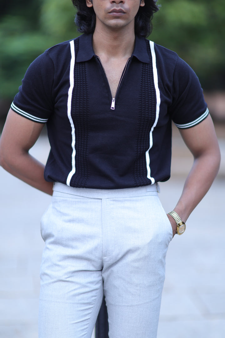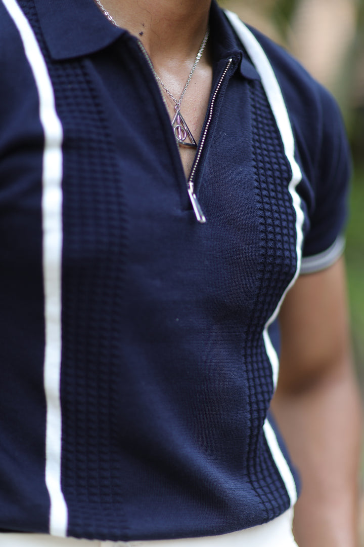 Upgrade your casual wardrobe with ILYZLY Navy Blue Ribbed Knit Pattern T-Shirt , where comfort meets timeless style. Made with soft knit fabric, this versatile piece is perfect for warmer days while maintaining a polished look. Whether it's a casual outing or a relaxed day at work, this polo has got you covered.