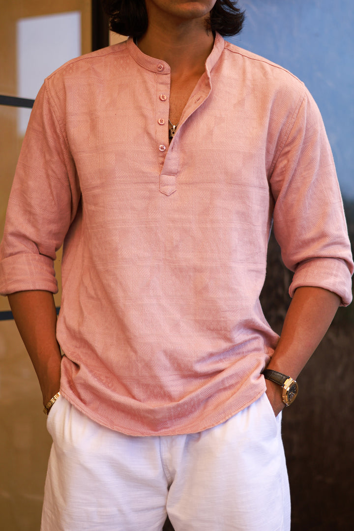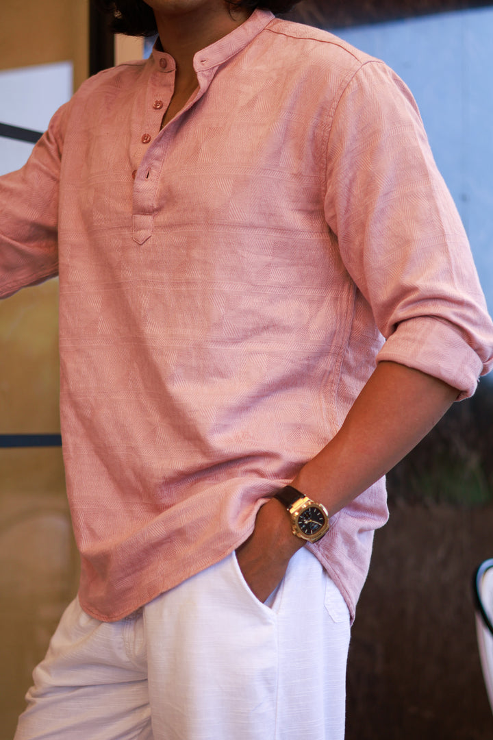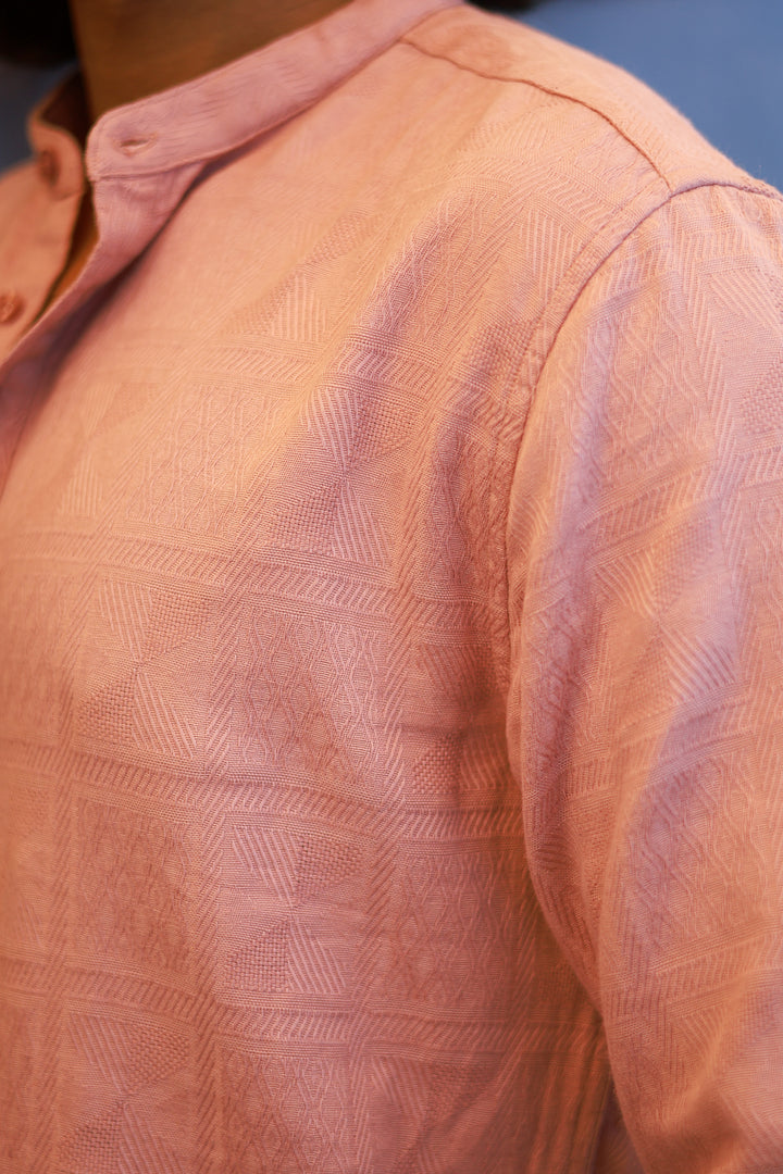 A perfect blend of texture and style, this Mandarin collar shirt features a refined horizontal weave pattern. Crafted from a lightweight cotton blend, it’s designed for both comfort and a contemporary look that’s effortlessly versatile.