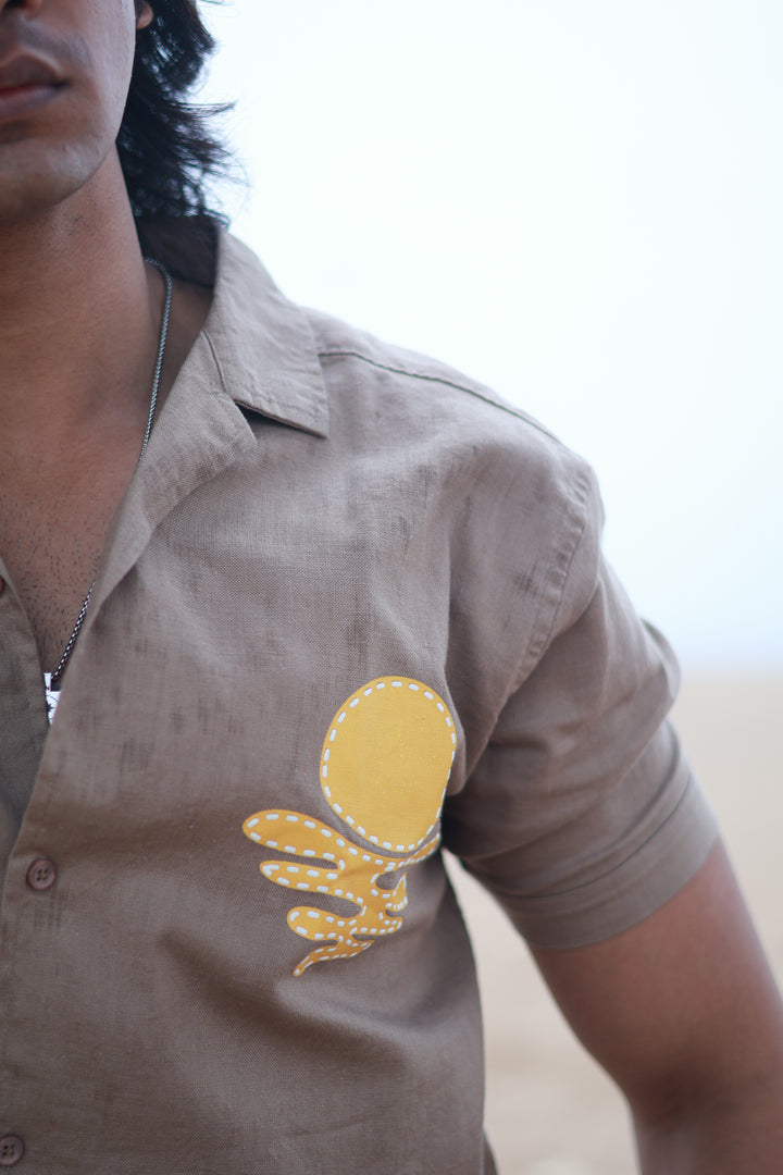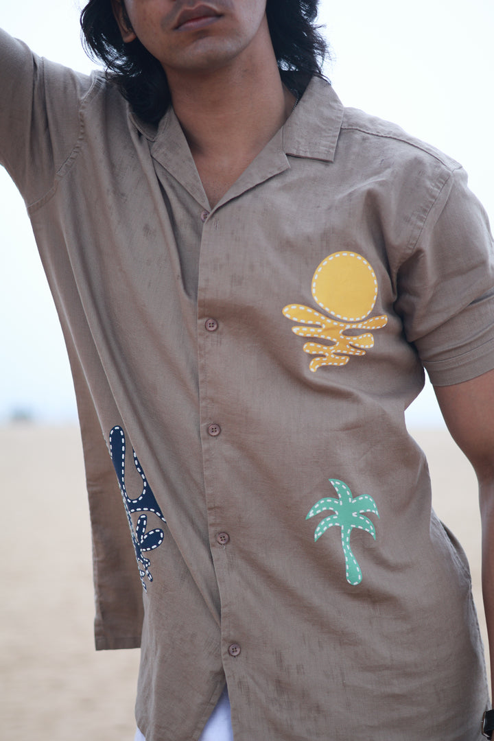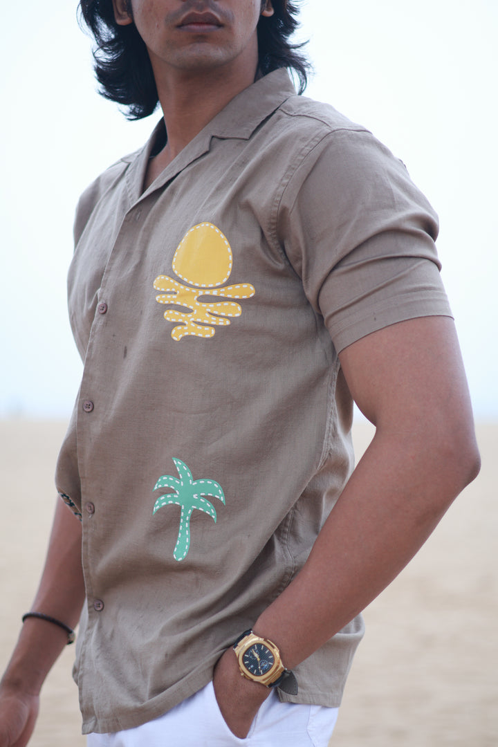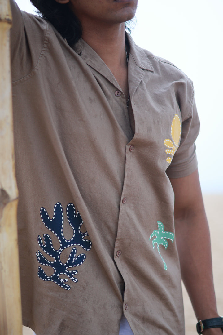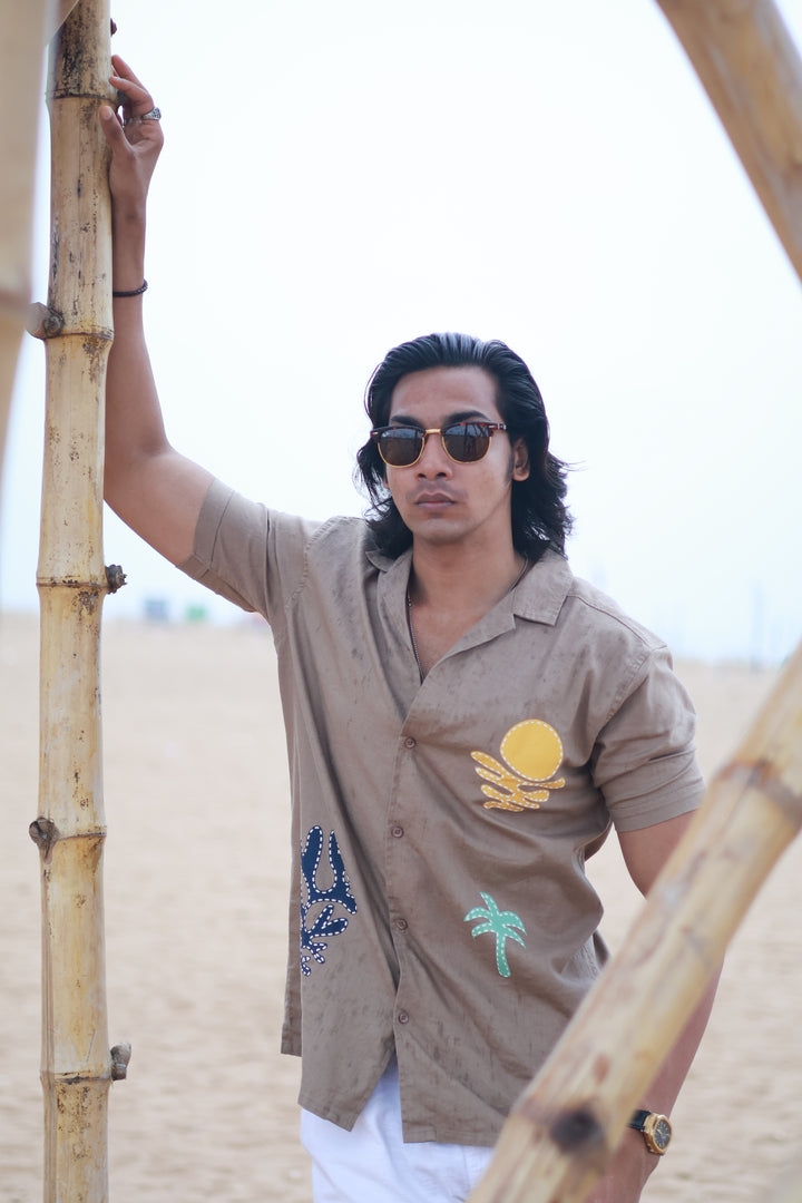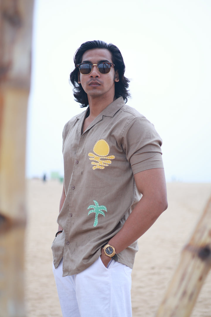 Add a touch of laid-back sophistication to your wardrobe with our,  Light Brown Self Designed Cuban Collar Shirt . Crafted for comfort and style, this shirt features a relaxed fit and perfect for any casual outing or beach getaway. Made with lightweight, breathable fabric, this shirt ensures you stay cool and stylish, whether you're enjoying a sunny day or a casual evening out. Pair it with jeans, shorts, or chinos for an effortlessly chic look.