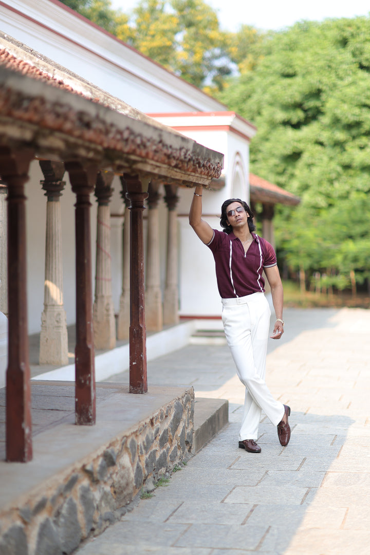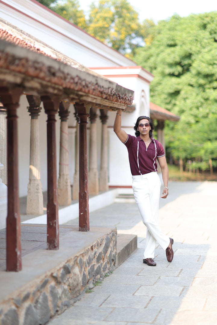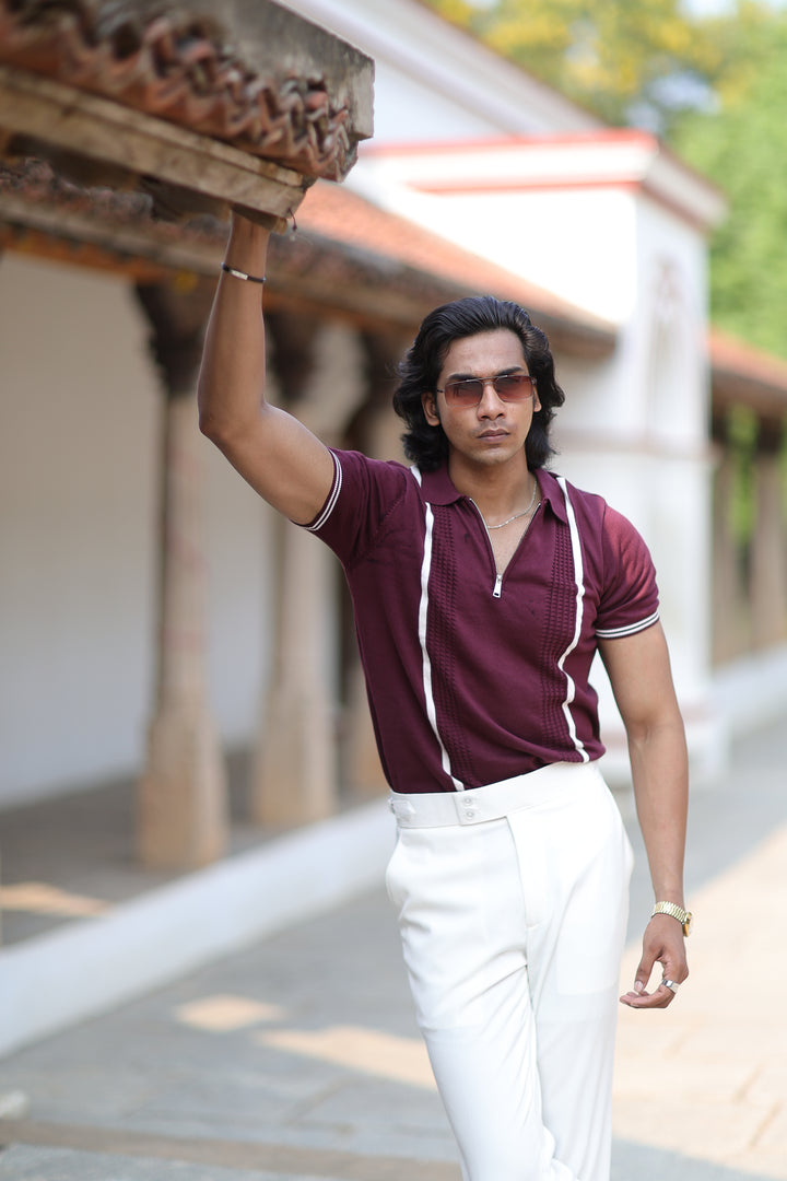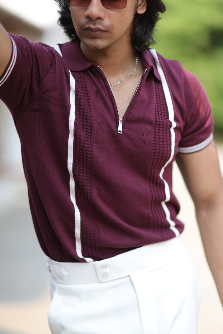 Upgrade your casual wardrobe with ILYZLY Wine Ribbed Knit Pattern T-Shirt , where comfort meets timeless style. Made with soft knit fabric, this versatile piece is perfect for warmer days while maintaining a polished look. Whether it's a casual outing or a relaxed day at work, this polo has got you covered.